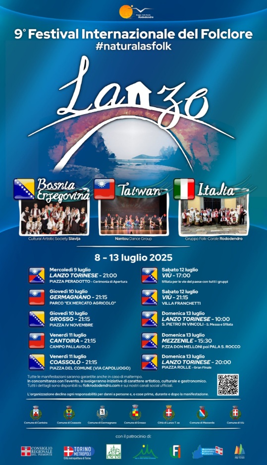 Torna a Lanzo Torinese il coloratissimo e attesissimo Festival del Folclore, giunto alla sua nona edizione! Un appuntamento imperdibile per chi ama le tradizioni, la musica popolare e l’atmosfera festosa dei balli e dei costumi da tutto il mondo.