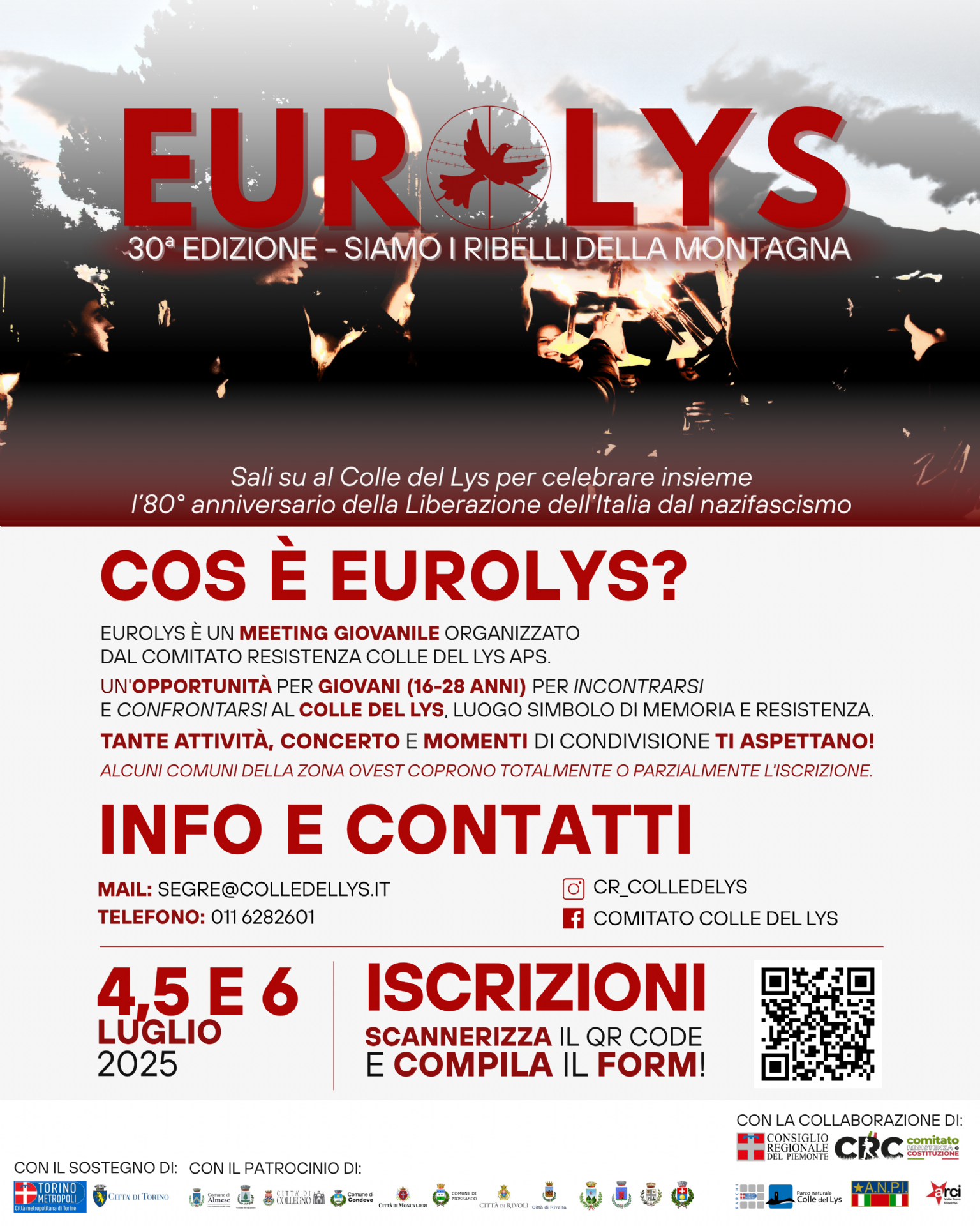 Il comitato resistenza Colle del Lys aps invita i giovani dai 16 ai 28 anni ad incontrarsi presso la località del Colle del Lys per festeggiare l'80° anniversario della liberazione dell'Italia dal nazifascismo.