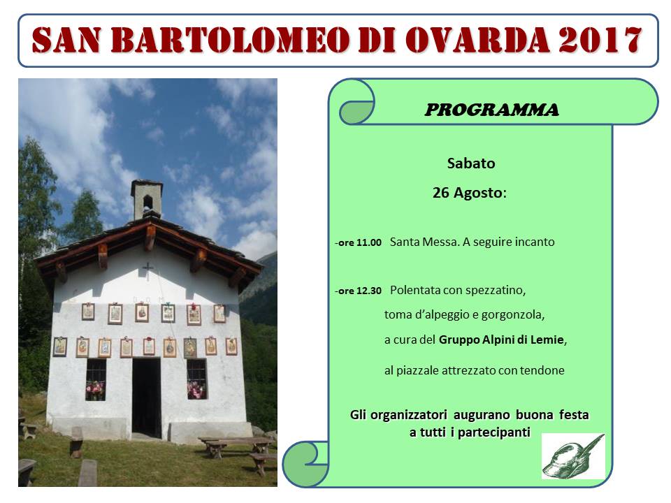 In allegato il programma della festa di san Bartolomeo nel vallone d'Ovarda