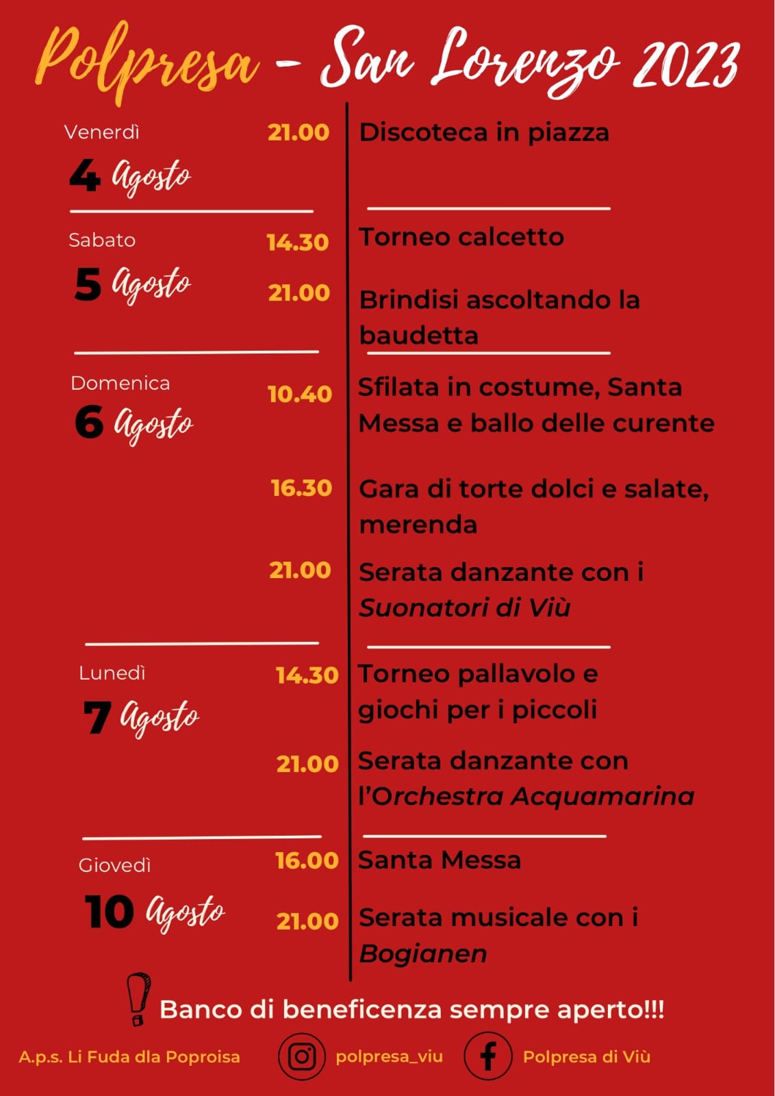 Banco di beneficenza sempre aperto