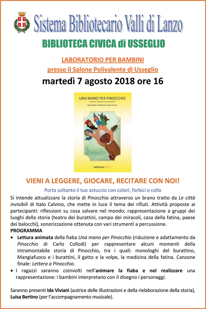 · Lettura animata della fiaba Una mano per Pinocchio (riduzione e adattamento da Pinocchio di Carlo Collodi) per rappresentare alcuni momenti della intramontabile storia di Pinocchio, tra i quali: monologhi del burattino, Mangiafuoco e i burattini, il gatto e la volpe, la medicina della fatina. Canzone finale: Lettera a Pinocchio.