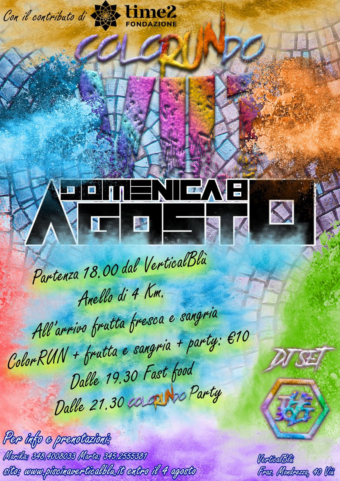 Costo: 10€ ColorRUN, frutta e sangria, party