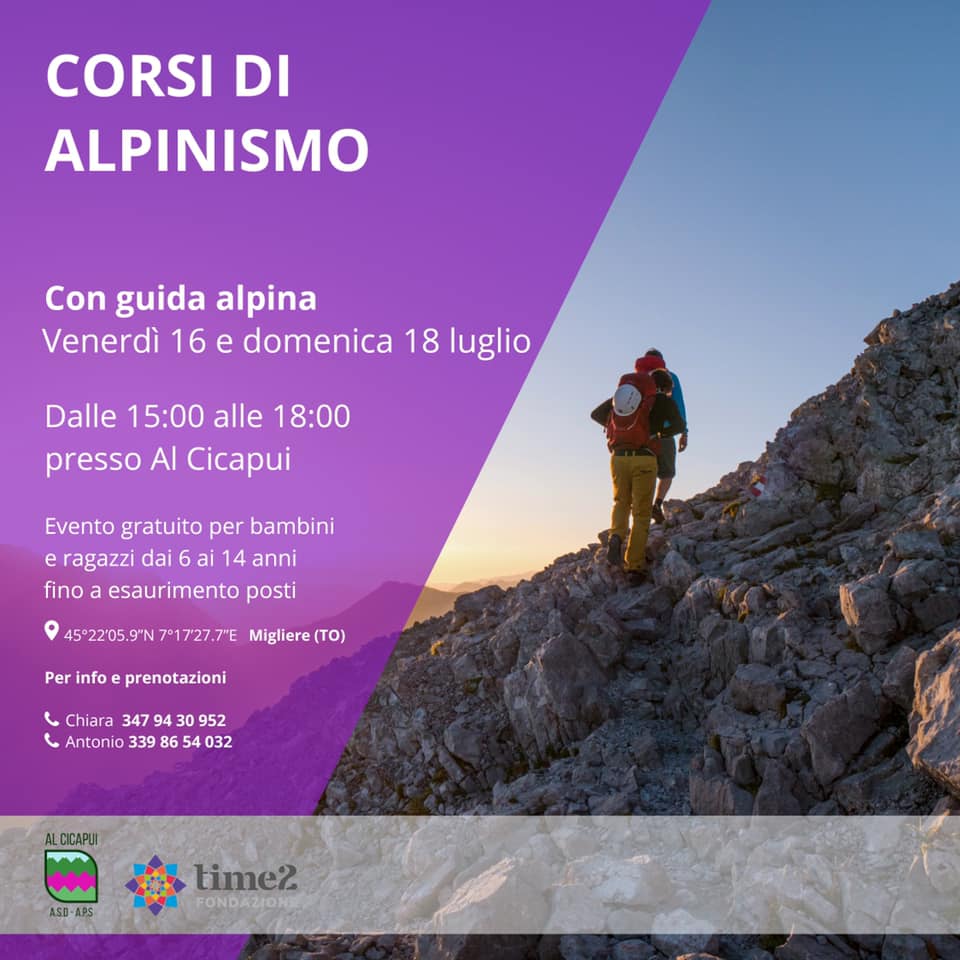 Venerdì 16 e domenica 18 luglio potrete partecipare a corsi di avvicinamento ludico all’alpinismo gratuiti sulle nostre splendide montagne.