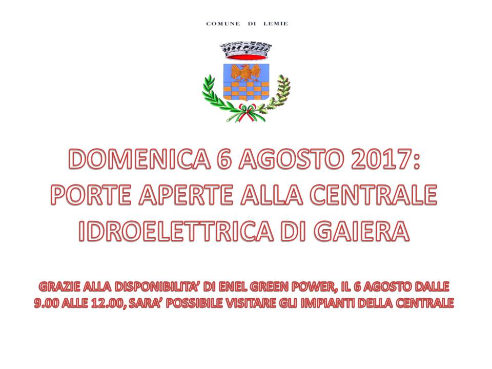 DOMENICA 6 AGOSTO 2017:PORTE APERTE ALLA CENTRALE IDROELETTRICA DI GAIERA.