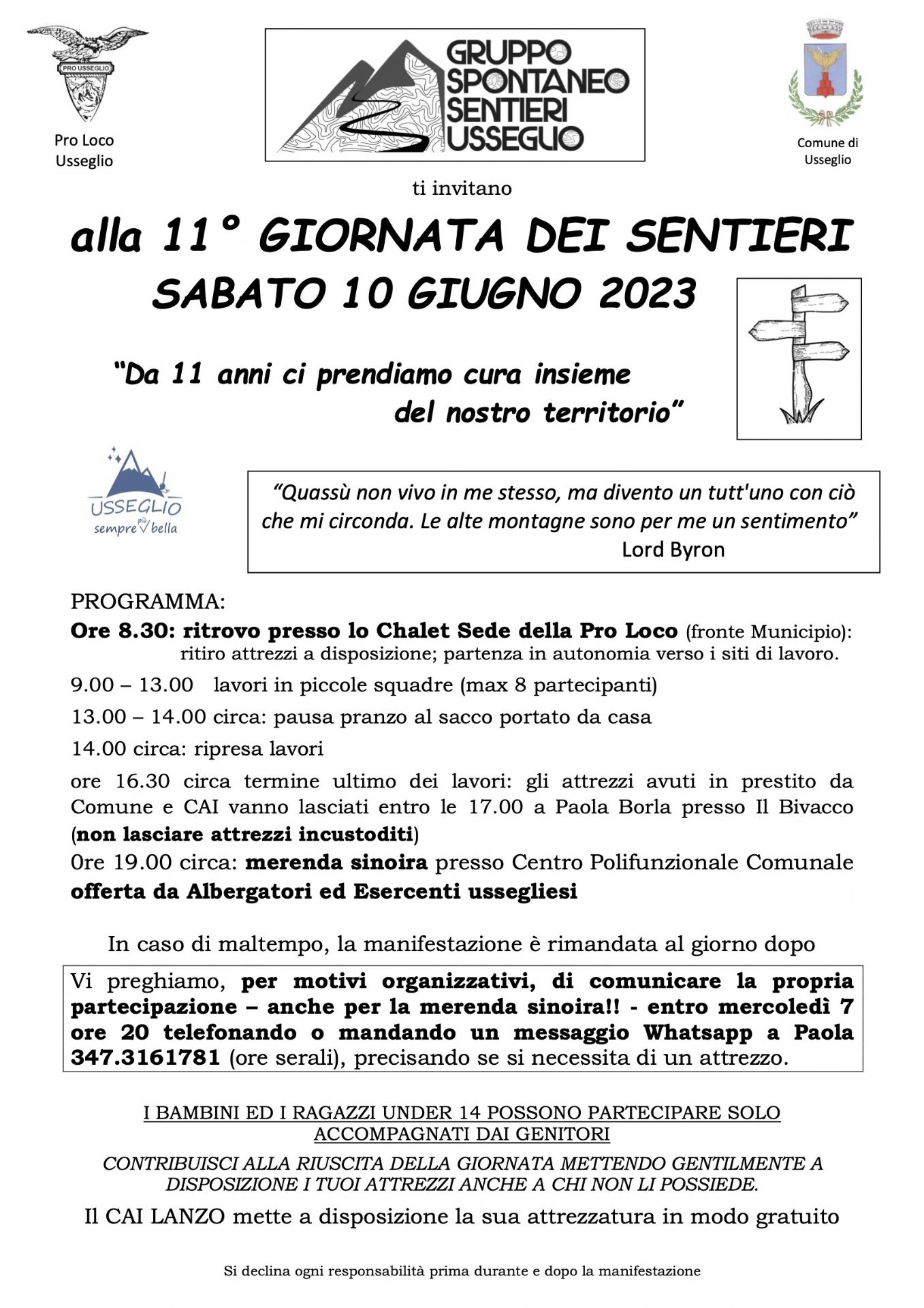 ore 16.30 circa termine ultimo dei lavori: gli attrezzi avuti in prestito da Comune e CAI vanno lasciati entro le 17.00 a Paola Borla presso Il Bivacco (non lasciare attrezzi incustoditi)