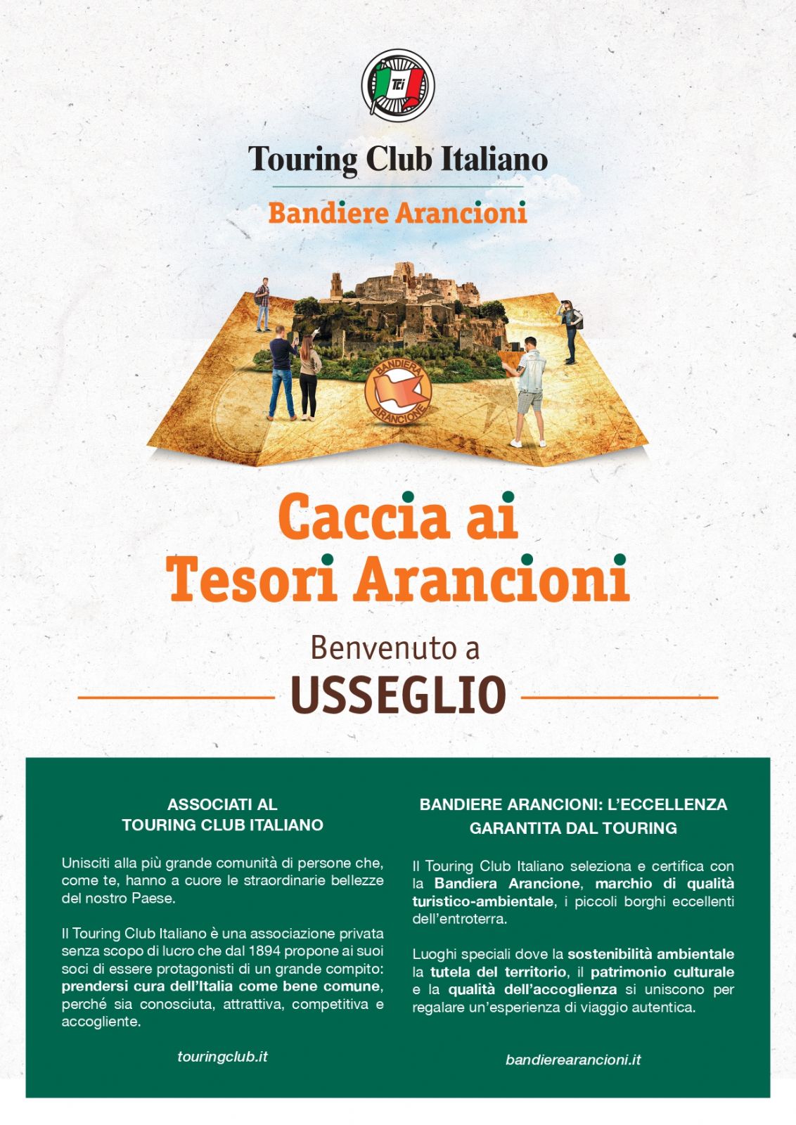 Torna la Caccia ai Tesori Arancioni: domenica 3 ottobre, in 100 borghi Bandiera Arancione in tutta Italia, si terrà in contemporanea la nuova edizione della più grande caccia al tesoro mai vista! Un modo giocoso e divertente per scoprire luoghi, persone e sapori delle splendide località certificate dal Touring Club Italiano.
