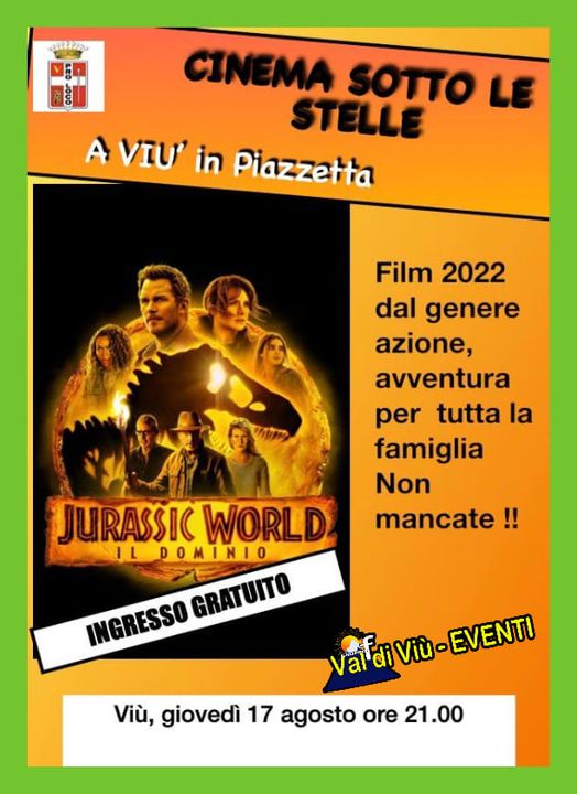 La Proloco di Viù propone un film d'azione per tutta la famiglia: "Jurassic World, il dominio"