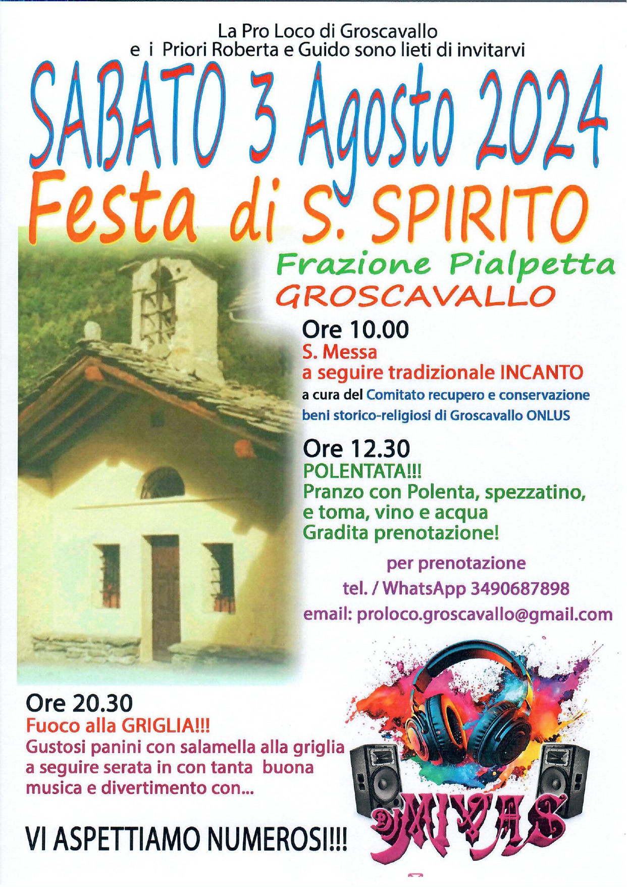 Sabato 3 agosto la Pro Loco di Groscavallo organizza la FESTA DI SANTO SPIRITO.