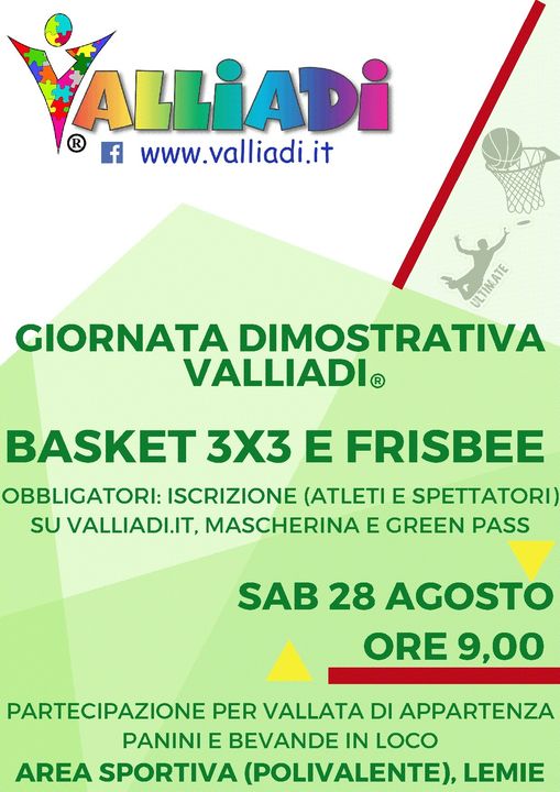 Sabato 28 Agosto infatti ci sarà un grande evento dimostrativo degli sport di basket 3x3 (nuova specialità olimpica) e ultimate fresbee, sport americano che abbiamo già iniziato a provare lo scorso anno