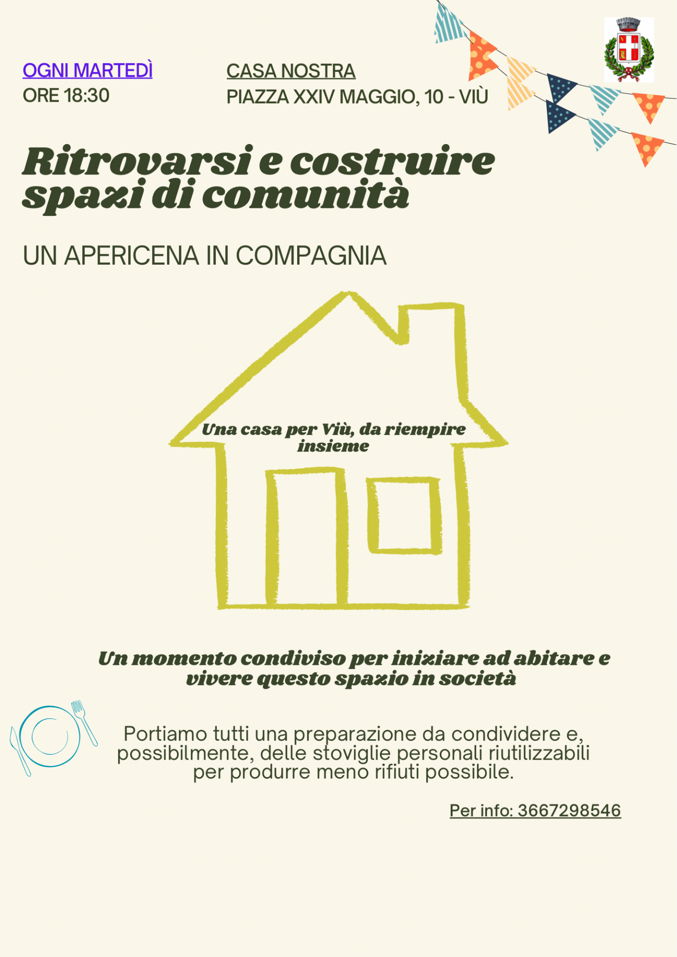 L'evento propone di portare ciascuno una preparazione da poter condividere con gli altri partecipanti.