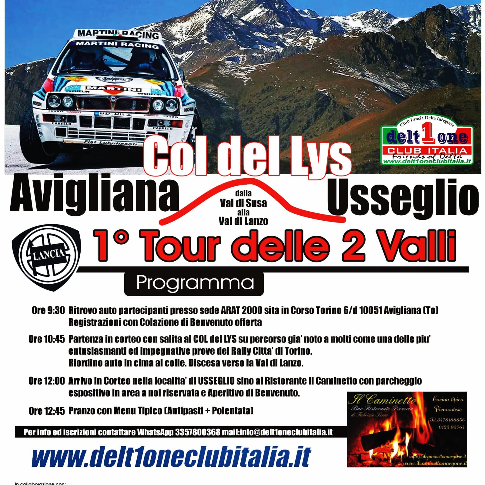 Ore 10:45 - Partenza in corteo con salita al Col del Lys su percorso già noto a molti come una delle più entusiasmanti ed impegnative prove del Rally Città di Torino. Riordino auto in cima al colle. Discesa verso la Val di Lanzo.