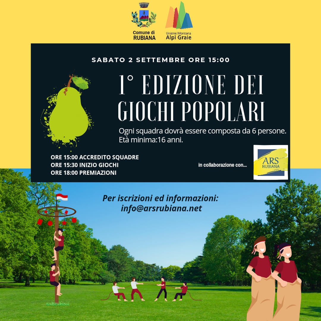 - Ore 15.30 Torneo di Giochi Popolari area campetto parrocchiale - Tornei: 6 persone per squadra over 16 anni (quota di partecipazione €20 a squadra)