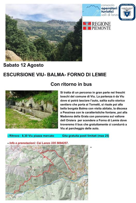 CAI ESCURSIONI CON BUS - DA VIU' A FORNO DI LEMIE