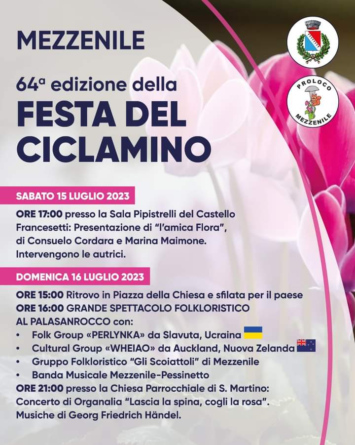 - ore 16 grande spettacolo folkloristico al Palasanrocco con il Folk Group "PERLYNKA" da Slavuta (Ucraina); il Cultural Group "WHEIAO" da Auckland (Nuova Zelanda); il Gruppo Folkloristico "Gli Scoiattoli" di Mezzenile e la Banda Musicale Mezzenile-Pessinetto.