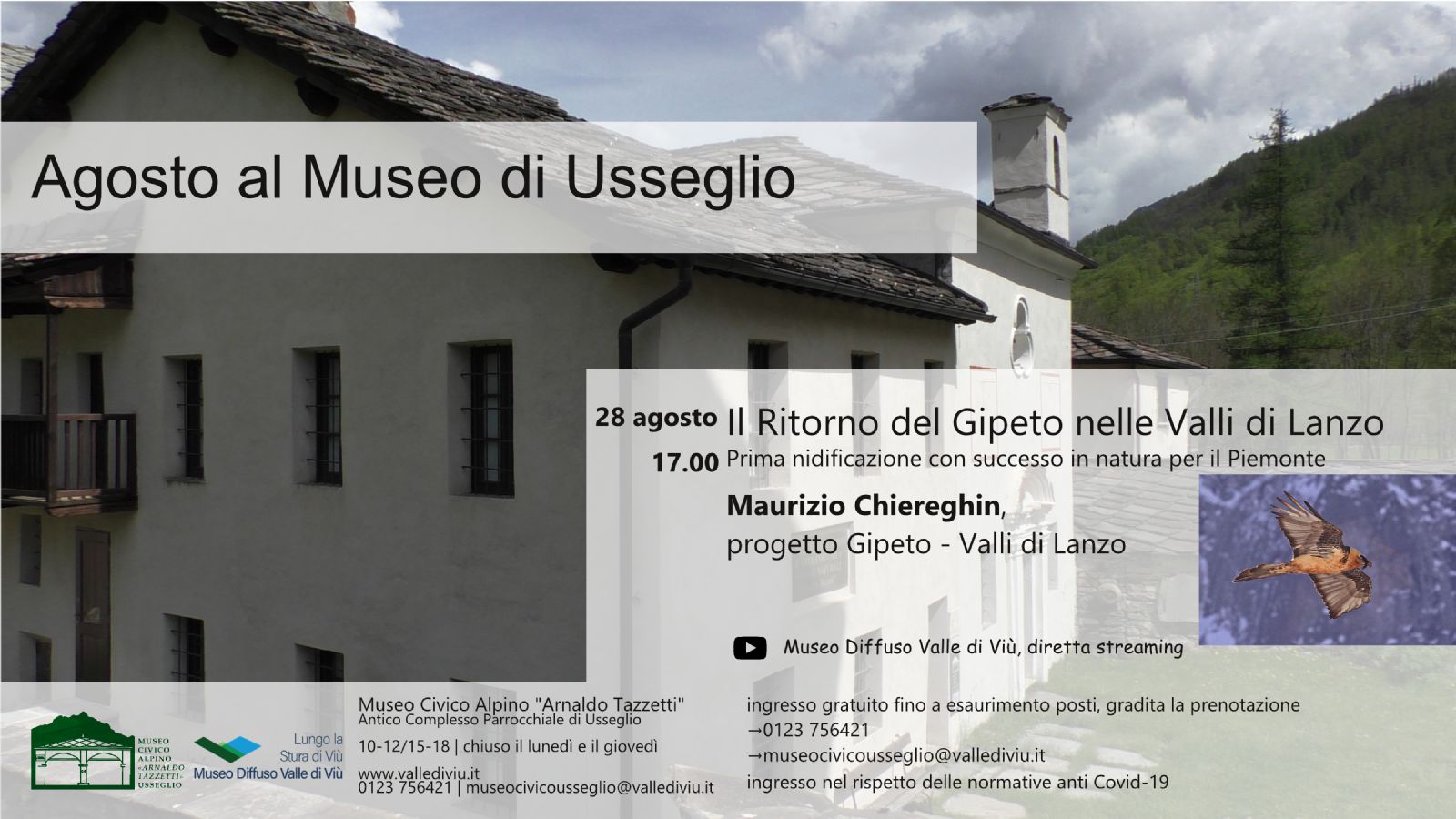Ingresso gratuito fino a esaurimento posti disponibili, è gradita la prenotazione al 0123 756421 o via e-mail a museocivicousseglio@vallediviu.it