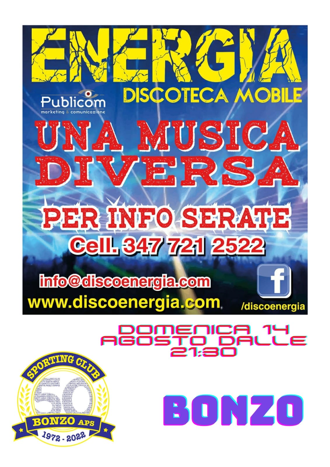 In occasione del 50° anniversario dalla fondazione il Bonzo Sporting Club organizza una serata di musica e balli