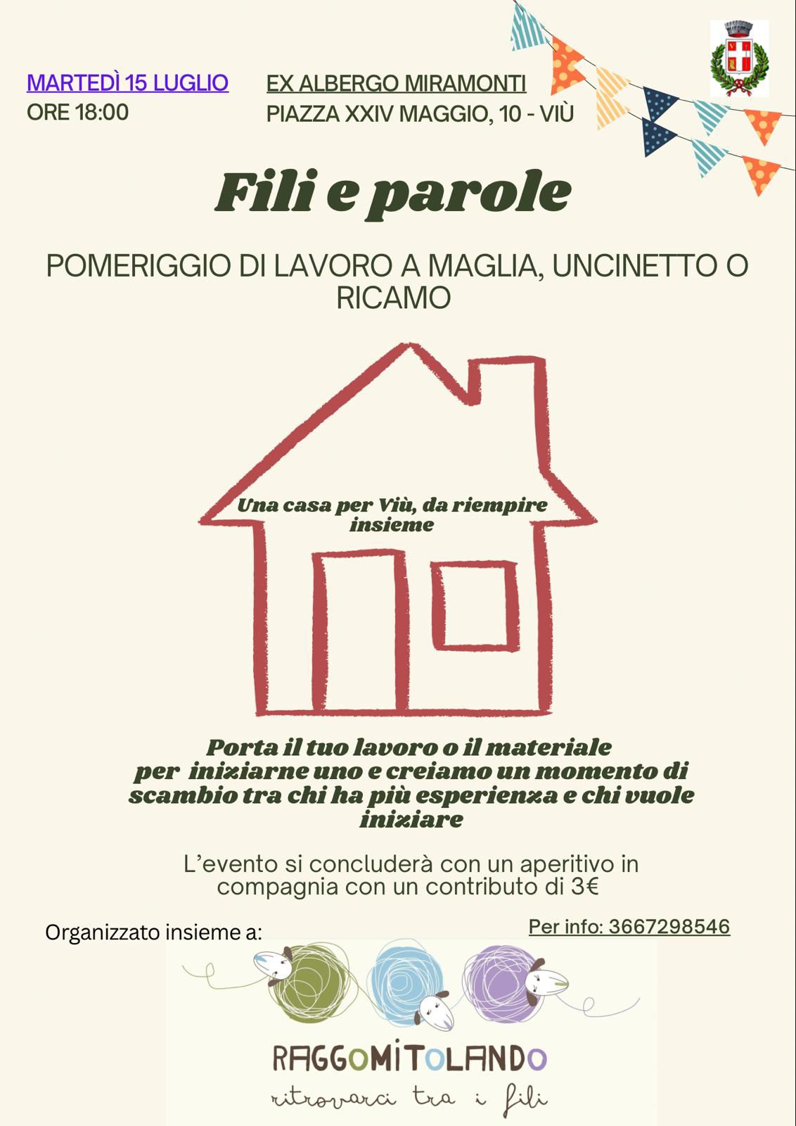 Un’occasione speciale per contribuire, punto dopo punto, alla nascita di una casa per Viù, da riempire con fili, parole e gesti.