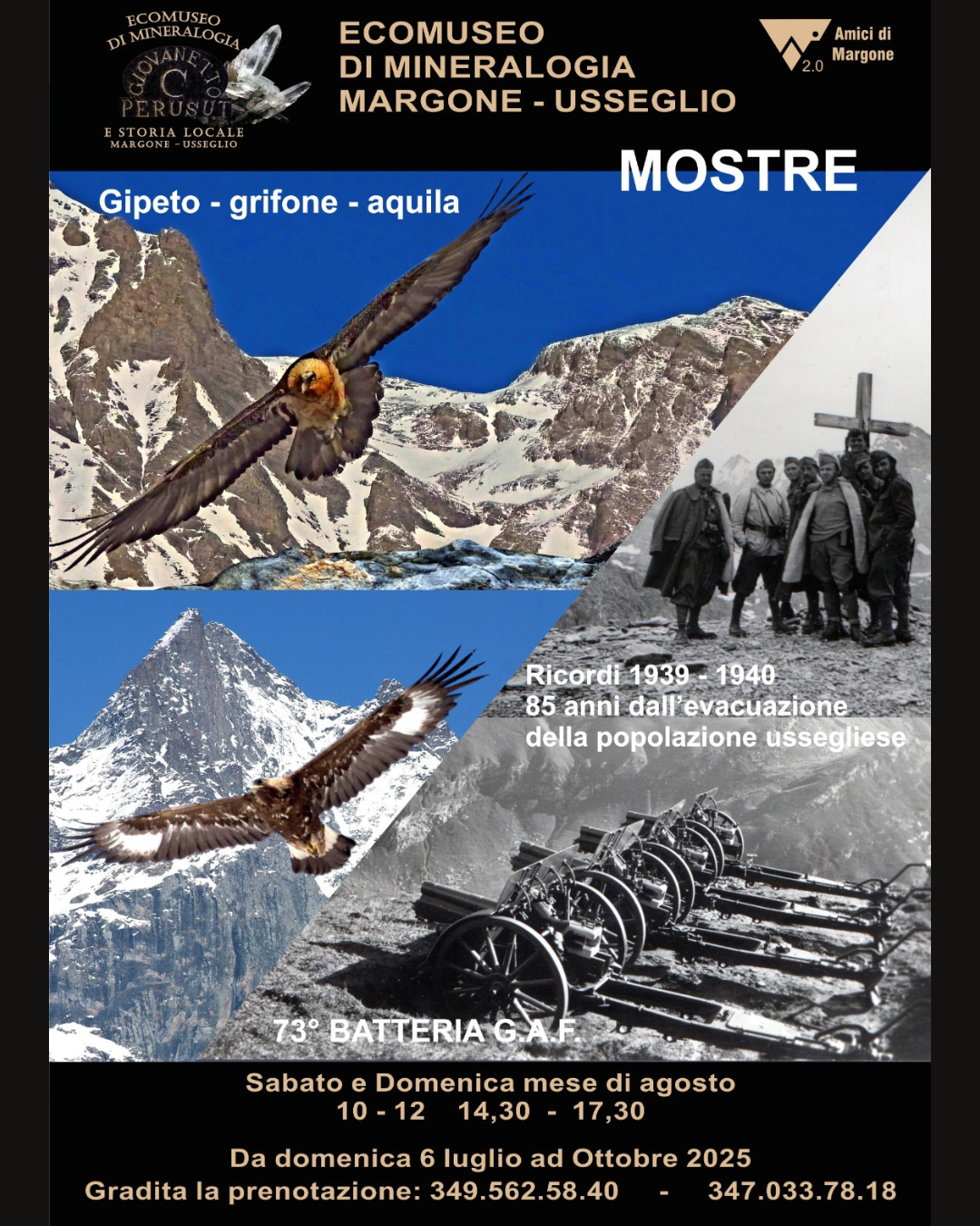 La seconda mostra rende omaggio alla 73ª Batteria della Guardia di Finanza, stanziata a Malciaussia durante la Seconda Guerra Mondiale. In occasione dell’85° anniversario dell’evacuazione della popolazione ussegliese, l’esposizione ripercorre una pagina significativa della storia locale, tra documenti, testimonianze e oggetti originali.