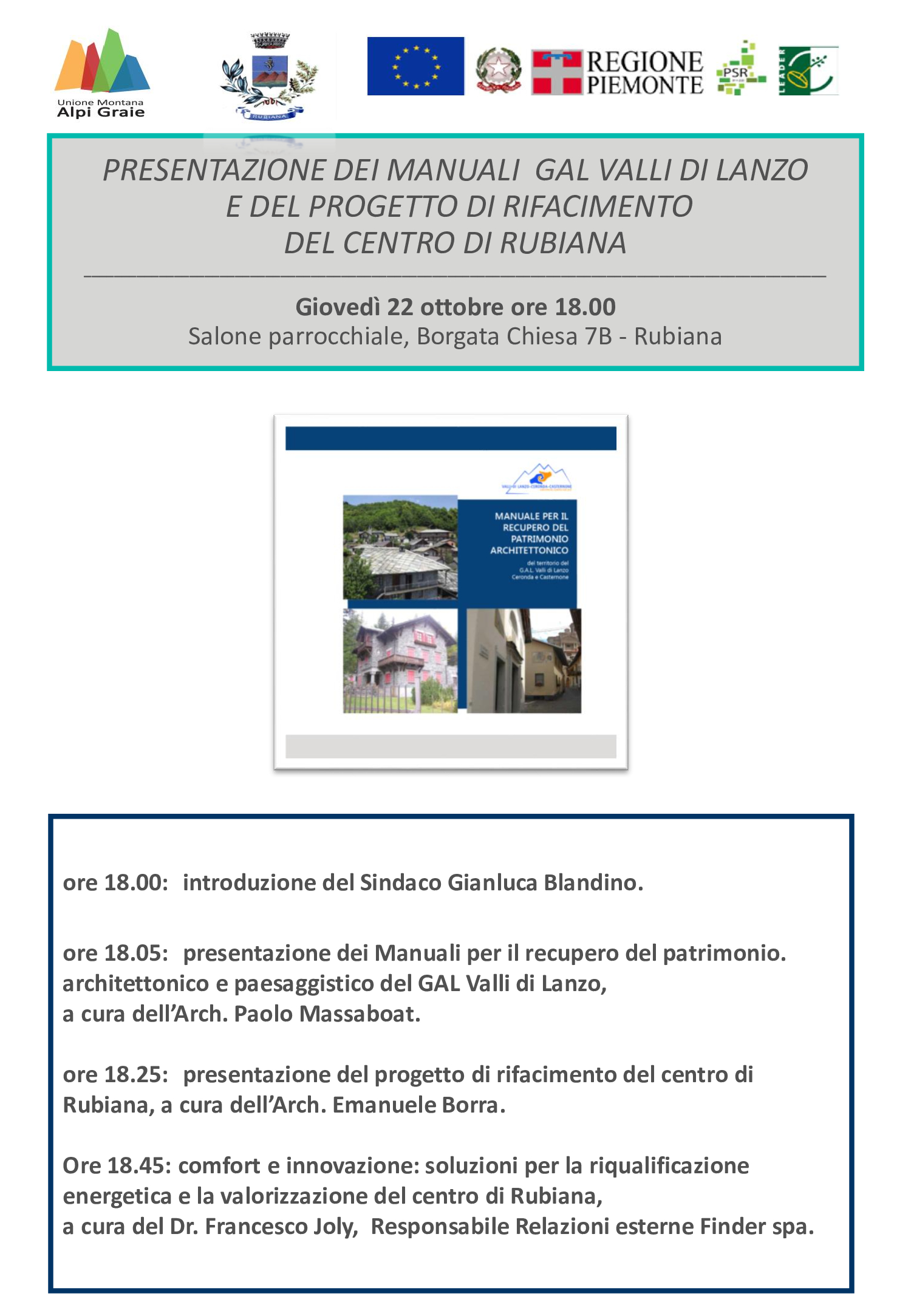 PRESENTAZIONE DEI MANUALI GAL VALLI DI LANZO E DEL PROGETTO DI RIFACIMENTO DEL CENTRO DEL PAESE