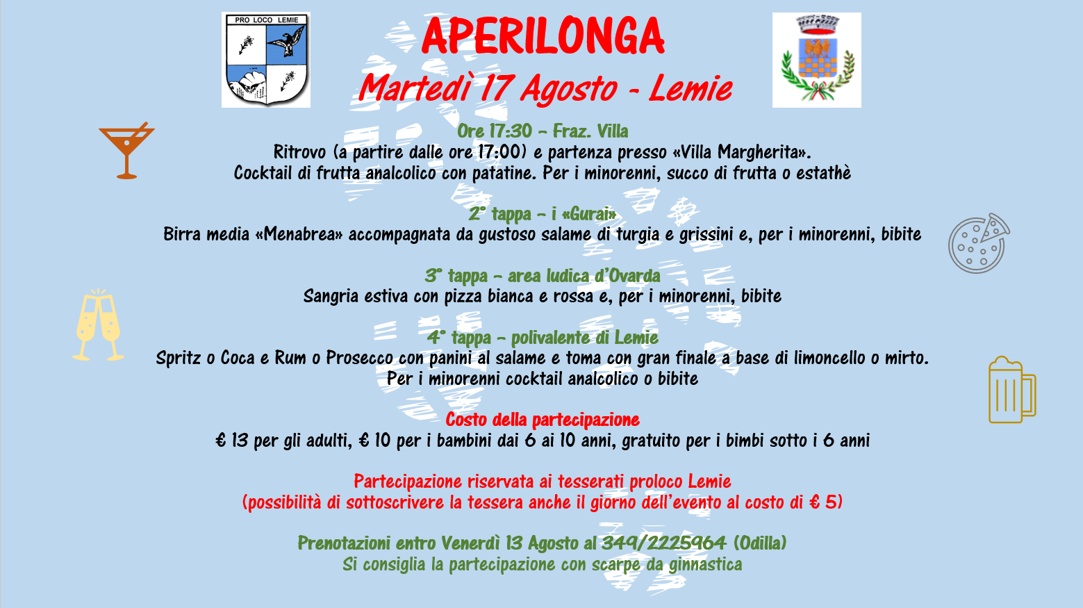 Partecipazione riservata ai tesserati Pro loco Lemie - possibilità si sottoscrivere la tessera il giorno dell'evento