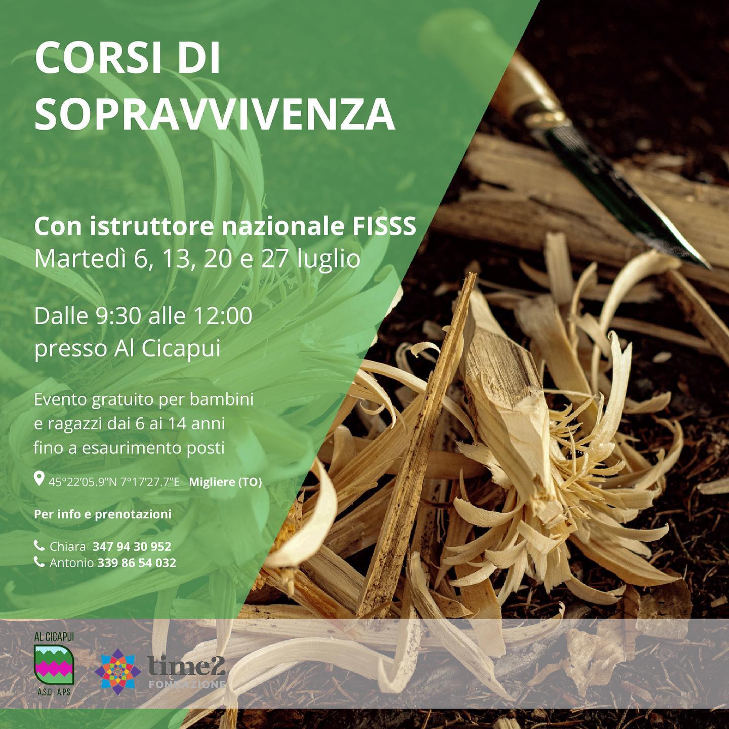 Tutti i martedì di questo mese di luglio potrete partecipare a corsi di sopravvivenza gratuiti sulle nostre splendide montagne.