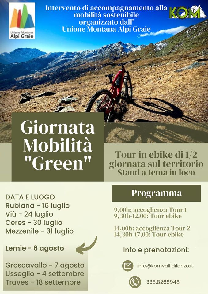 Queste giornate - una per ogni comune dell'Unione Montanana Alpi Graie - avranno come oggetto l'avvicinamento al prodotto ebike, anche quale strumento per meglio fruire il territorio valligiano.