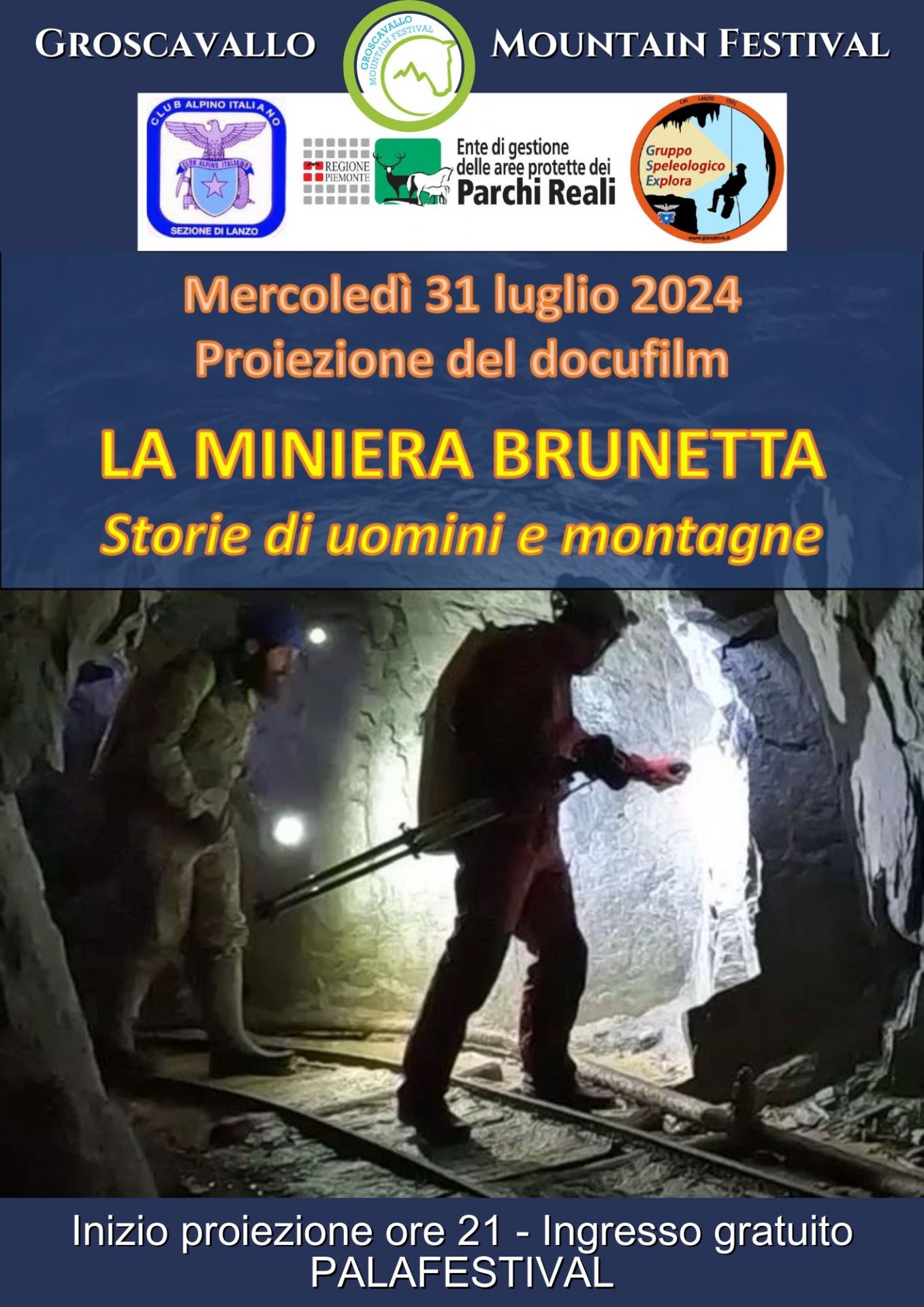 Mercoledì 31 luglio 2024 al PALAFESTIVAL di Groscavallo avrà luogo la proiezione del docufilm "La Miniera Brunetta".