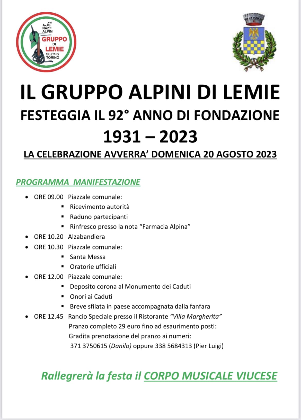 92° Anniversario di fondazione del Gruppo Alpini Lemie