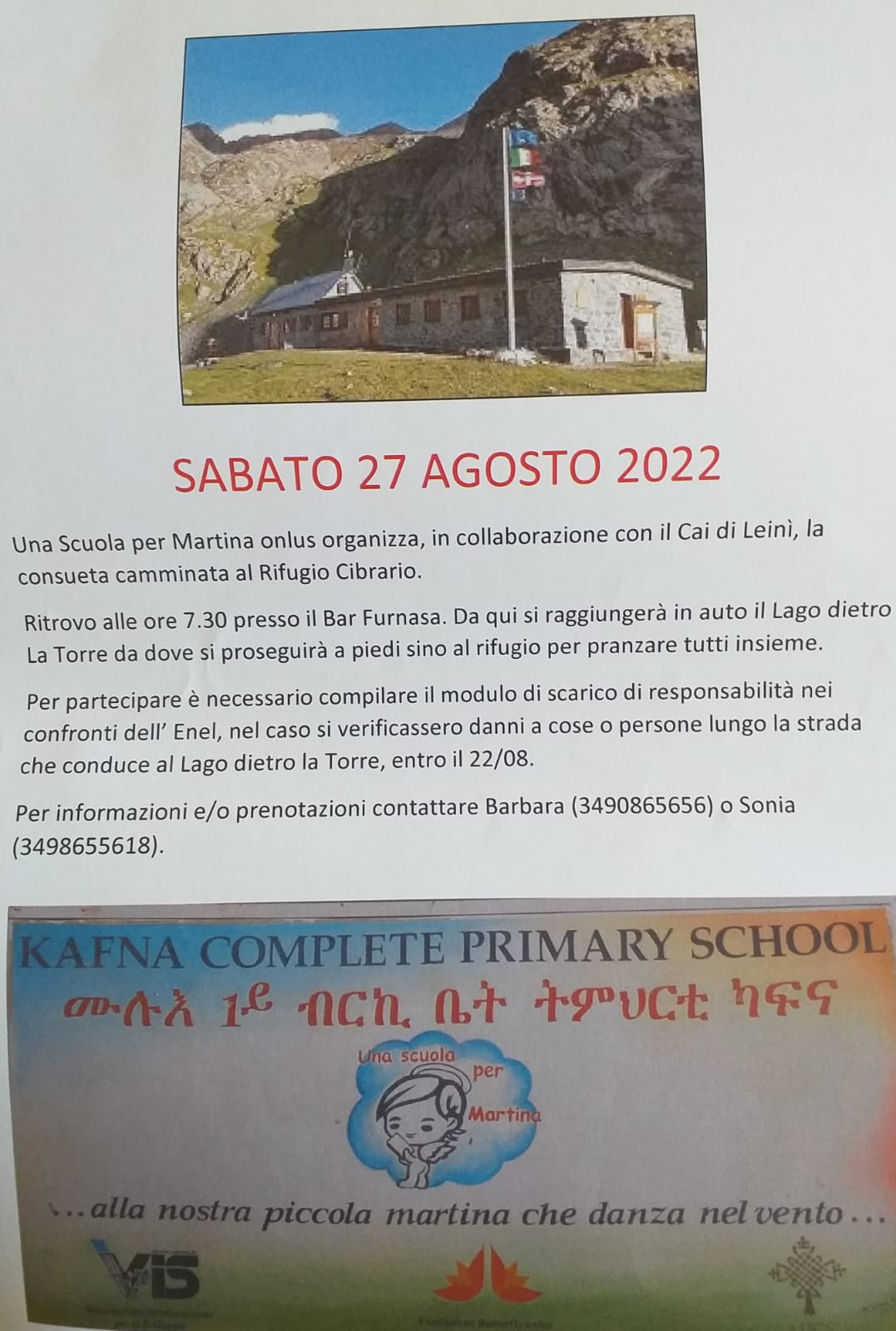 Una Scuola per Martina onlus organizza, in collaborazione con il CAI di Leinì, la consueta camminata al rifugio Cibrario.