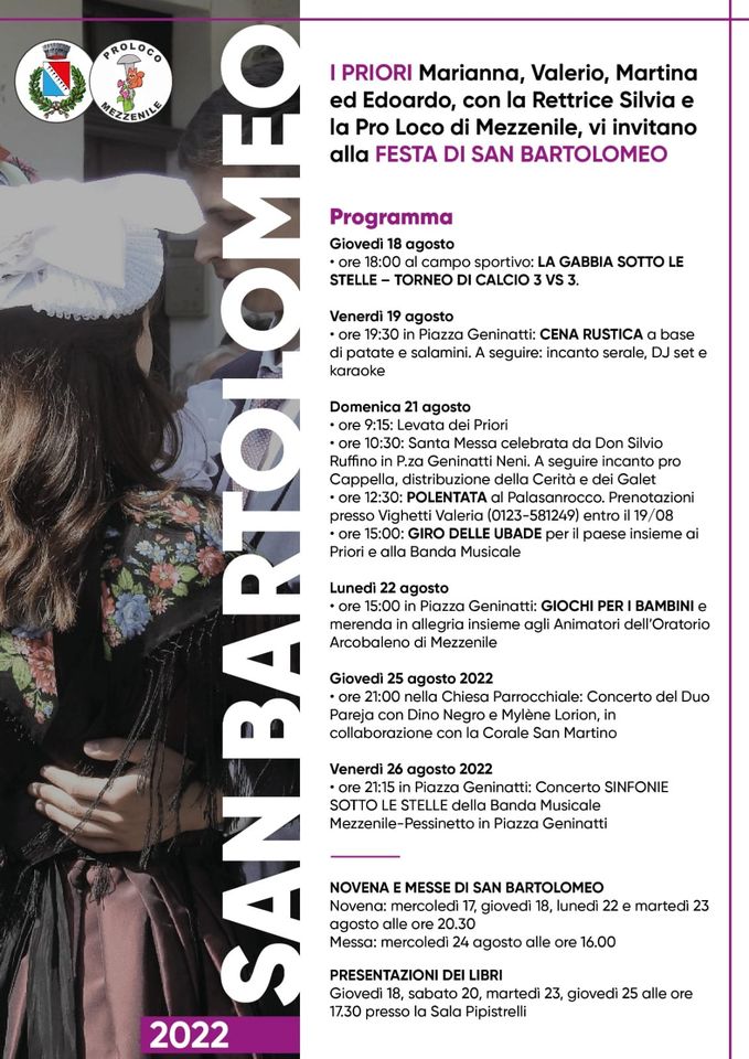 - ore 19.30 in Piazza Geninatti cena rustica a base di patate e salamini, a seguire incanto serale, dj set e karaoke