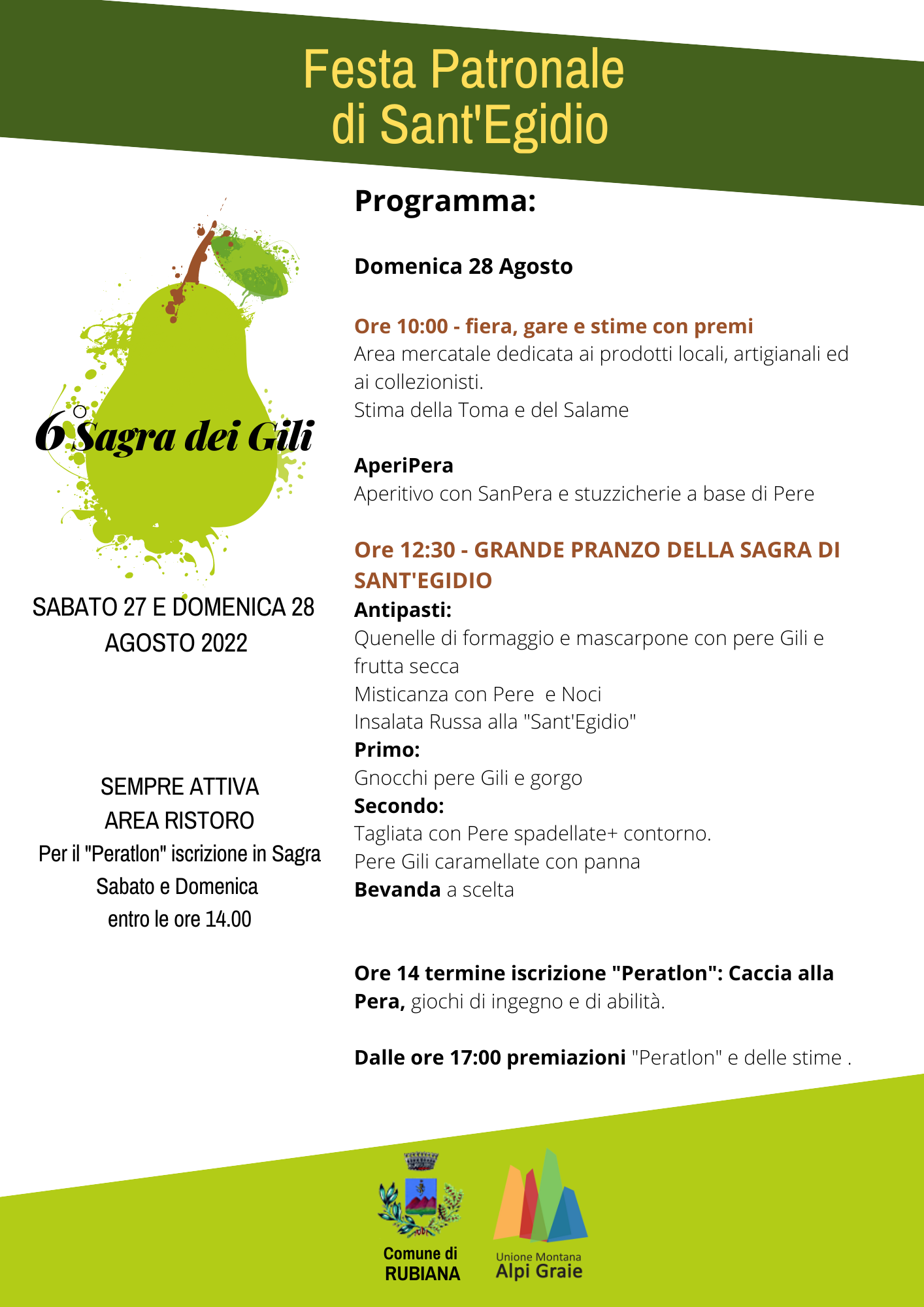 - ore 12.30: Gran Pranzo della Fiera di Sant'Egidio