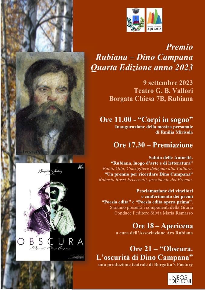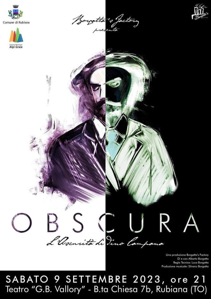 - ore 21.00: "Obscura" opera teatrale ispirata alle oscurità di Dino Campana, a cura della Borgatta's Factory. Presso il teatro in Borgata Chiesa, 7b