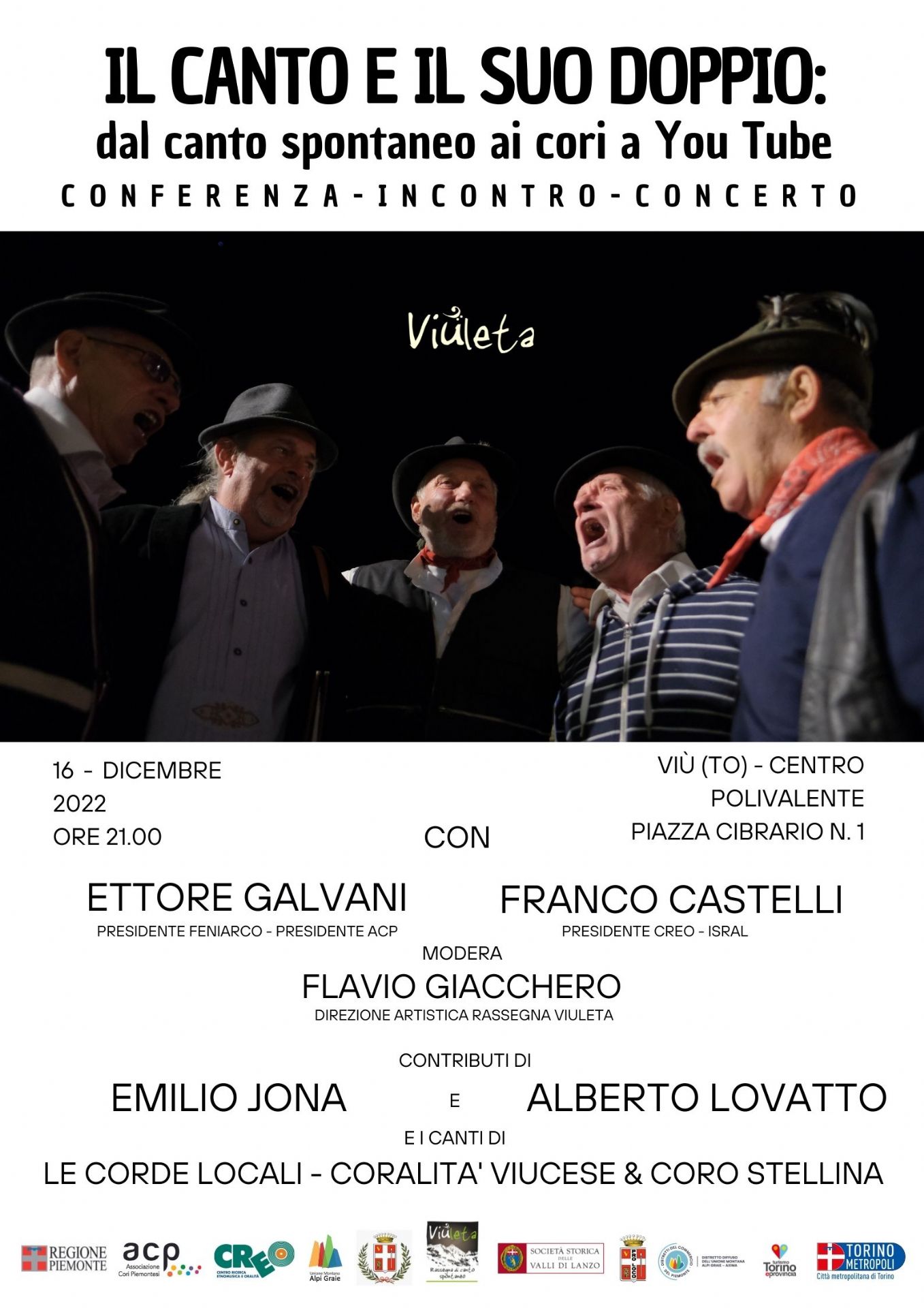 conferenza/incontro/concerto venerdì 16 dicembre presso il Centro Polivalente alle ore 21.00.