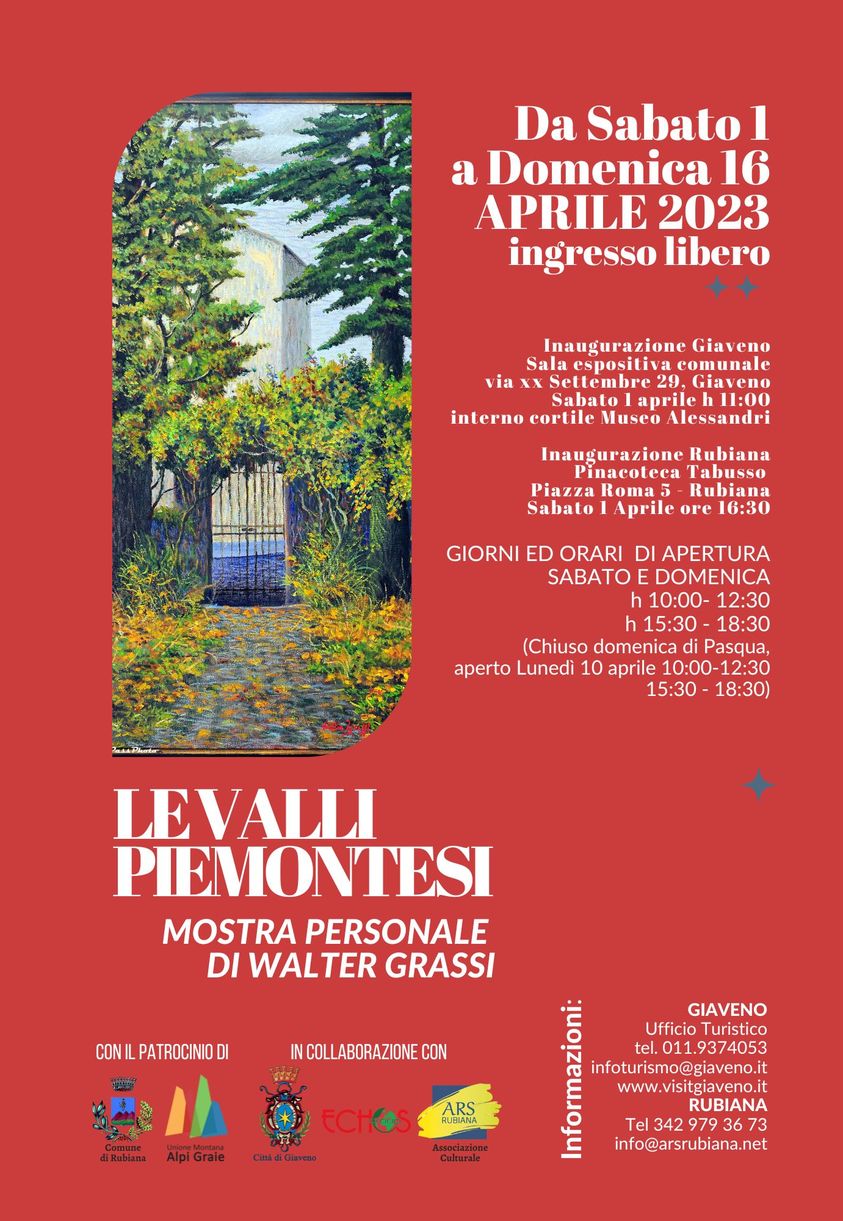Si parte con una novità: "Le valli piemontesi" - la mostra personale dedicata al pittore neo divisionista Walter Grassi - sarà dislocata su due spazi espositivi diversi: la nostra Pinacoteca e la Sala comunale nel cortile interno del Museo Alessandri di Giaveno. Un'iniziativa condivisa dalle due Amministrazioni municipali che cinque mesi fa hanno siglato un protocollo d'intesa per la valorizzazione e la promozione delle iniziative culturali sui propri territori.
